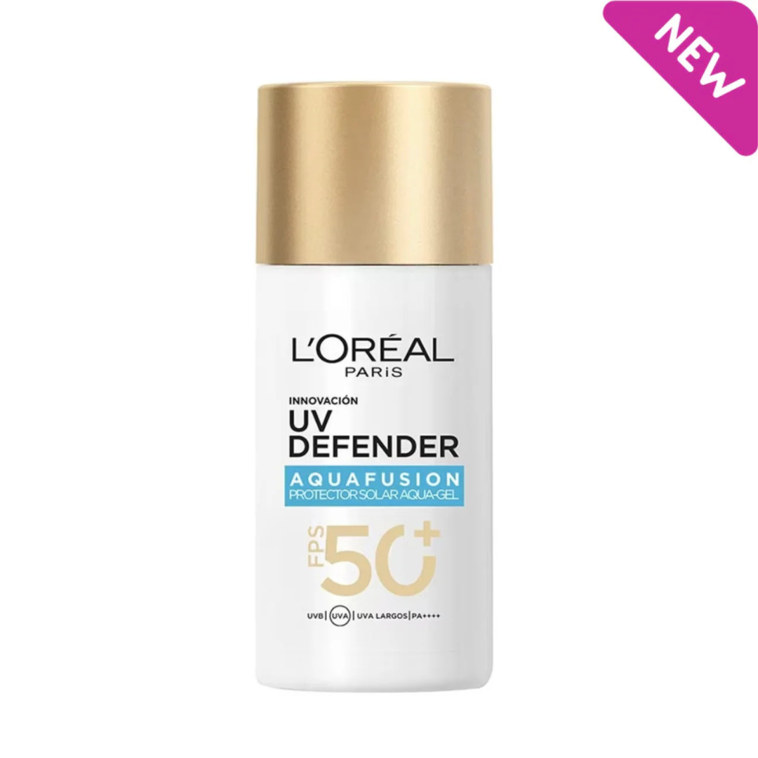 UV Defender Aquafusion Daily Water Gel Sunscreen SPF50+ by L’Oréal Paris is an ultra-lightweight, refreshing water-gel sunscreen designed for everyday protection. It delivers high broad-spectrum SPF50+ PA++++ defense against UVA and UVB rays while instantly hydrating the skin. The fast-absorbing formula melts into the skin in just 3 seconds, leaving a breathable, non-greasy, and non-sticky finish with no white cast, making it ideal for daily wear under makeup.